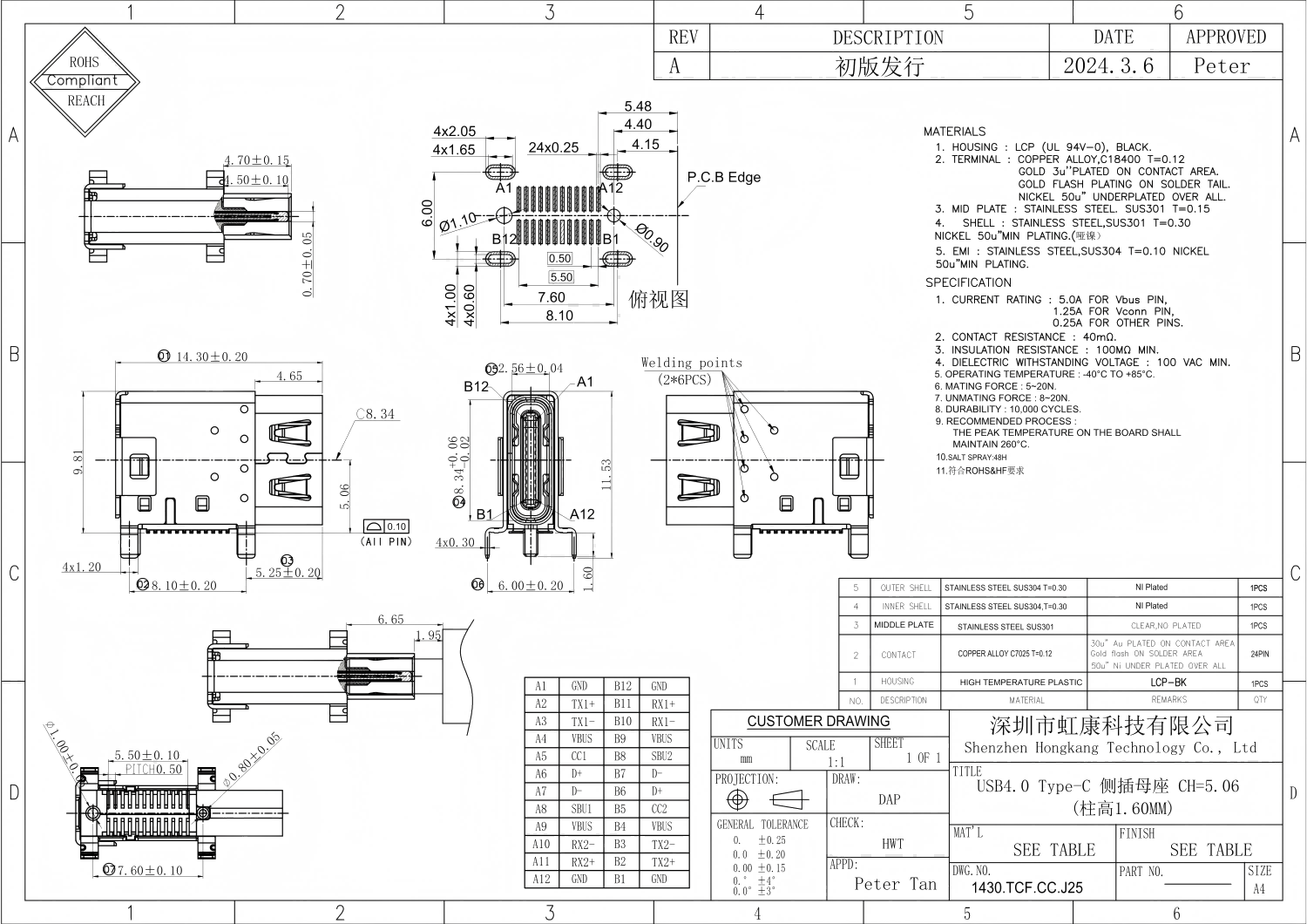 USB4.0 | 40Gbps | Type-C | 整合USB3.2/Thunderbolt3,支持双向传输(2对差动线上行40Gbps+2对下行40Gbps) | 85Ω±9Ω |