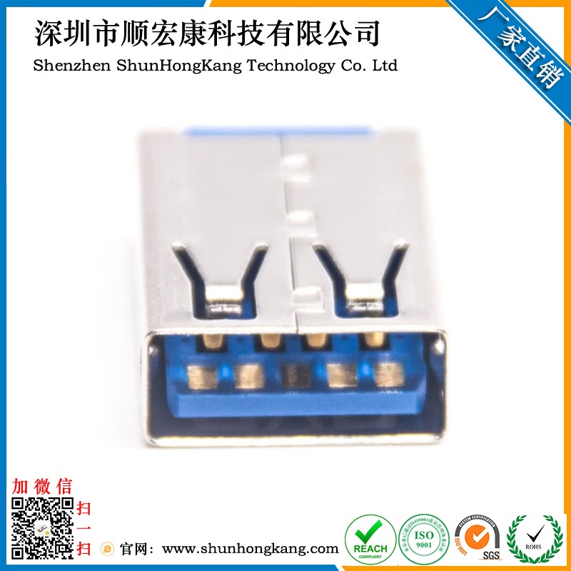 USB 3.0 AF DIP 180度,L=17.0MM无卷边外壳成品