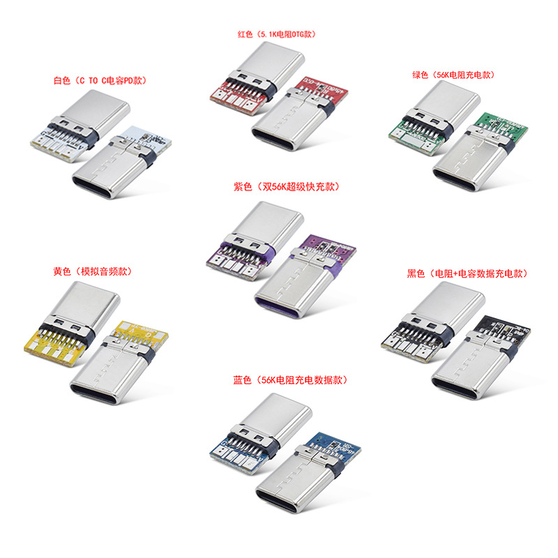 Type-C公头铆合回流焊电阻电容大电流充电黑胶USB连接器