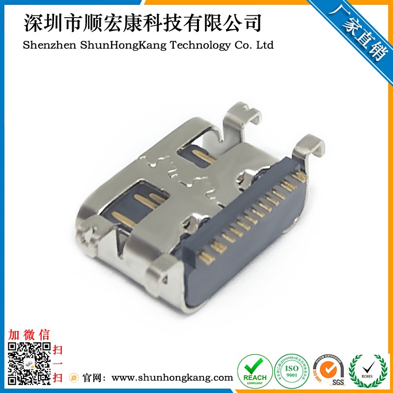 Type-C 16PIN母座 反向沉板3.35 四脚插板SMT L=6.5