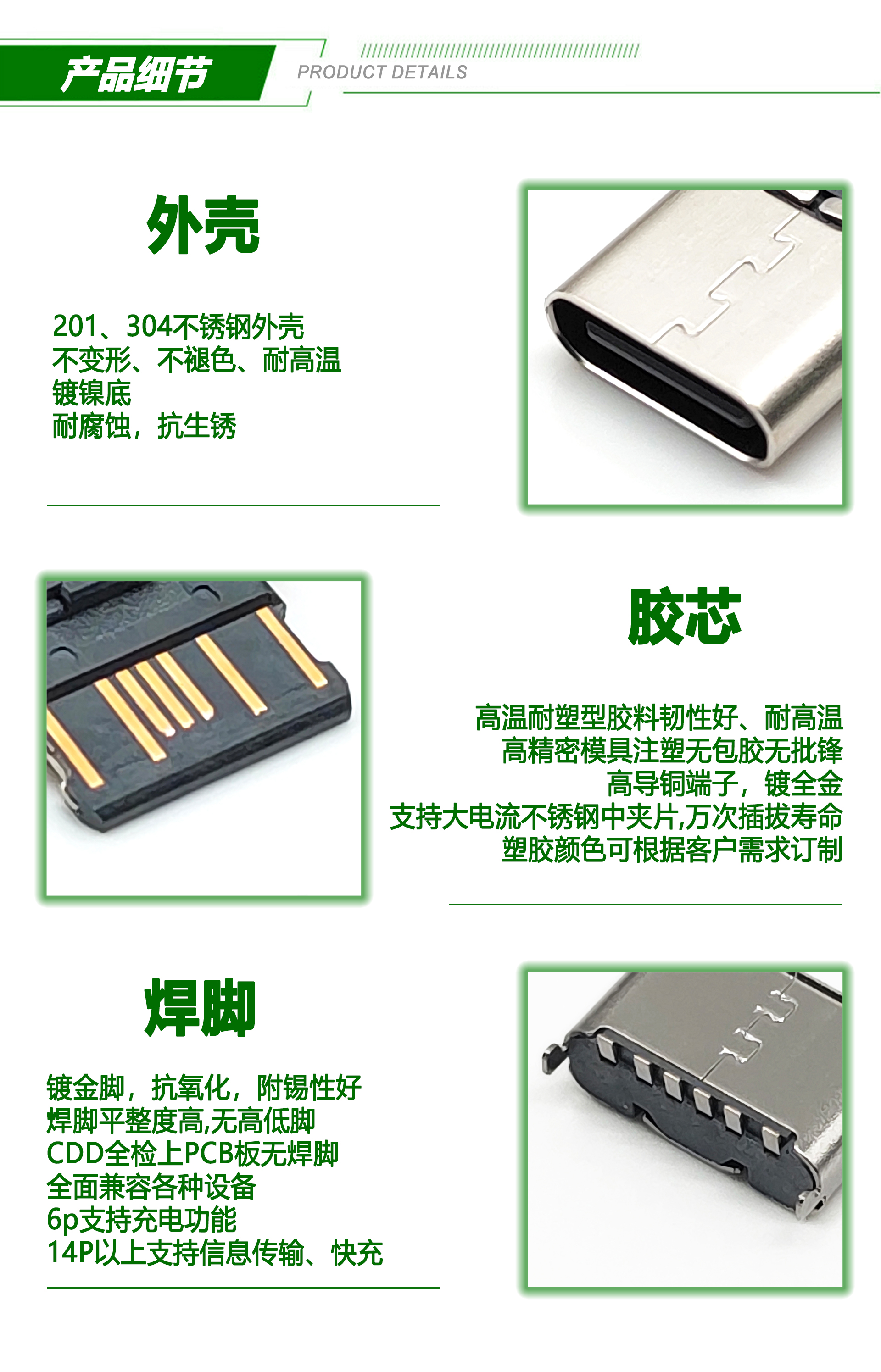 TYPE C母座6PIN 立贴 L=5.15 卷边无弹 2.0新款