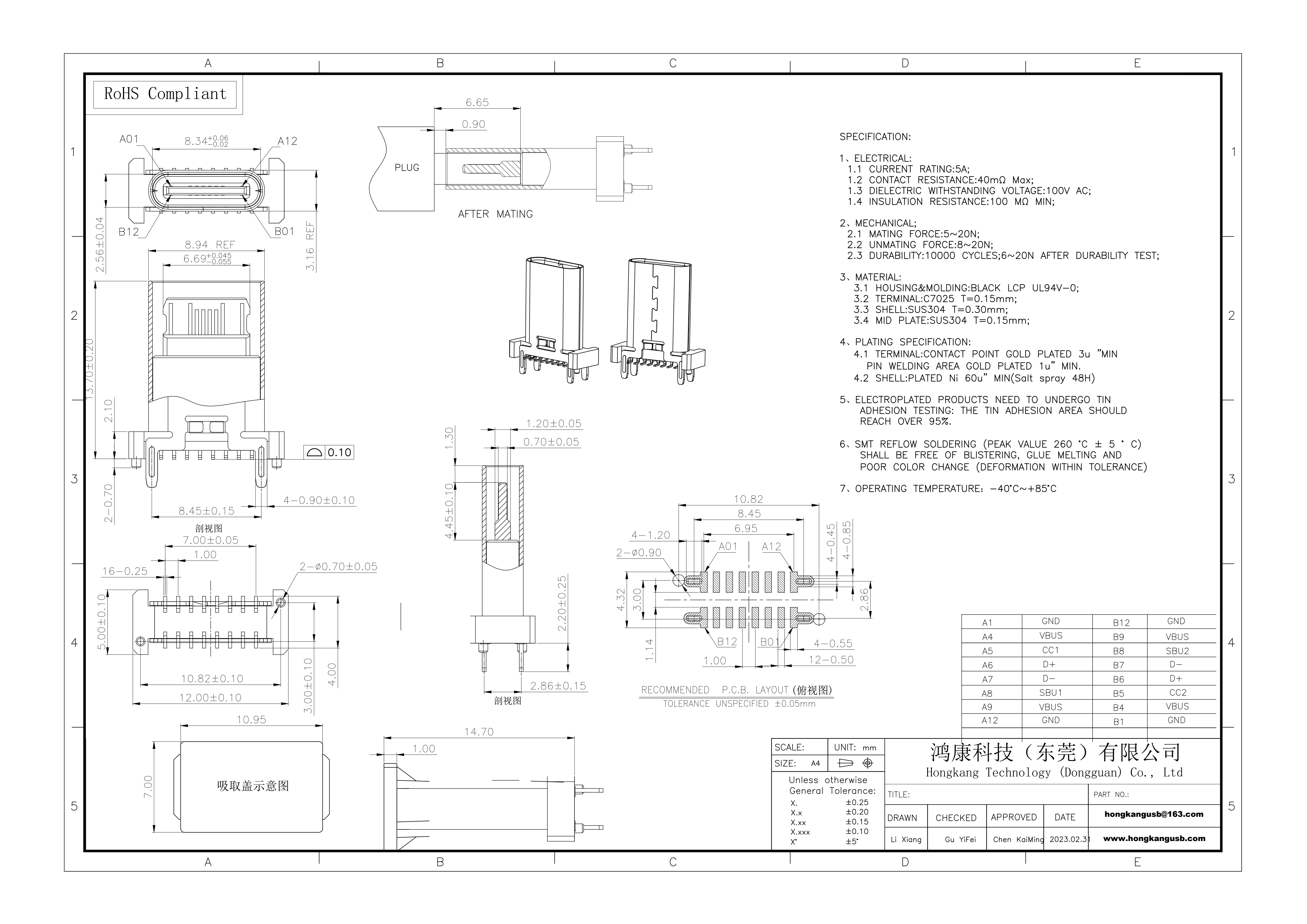 声明:有关于产品的规格、参数、寿命、工作温度、手感、防水等级等数据,只代表鸿康科技内部的测试结果,如需详细测试方式,请联系鸿康科技业务人员。